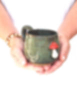 A gorgeous mug in shades of deep greens with a wonderful comfortable toadstool handle.